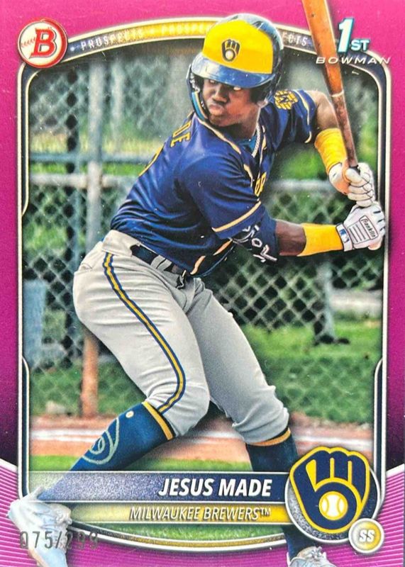2025 Bowman Jesus Made 1st Prospects Fuchsia Paper /299 Brewers #BP-66