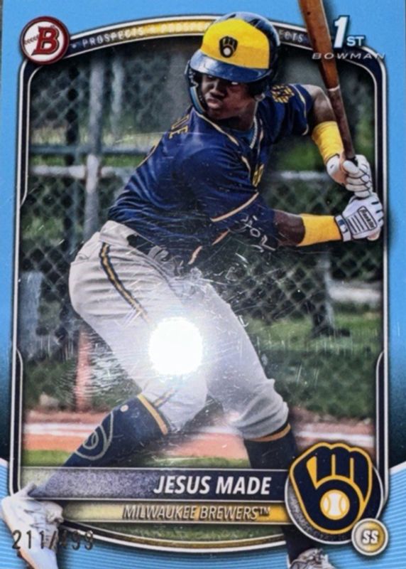 2025 Bowman Jesus Made# BP66 1st Bowman Sky Blue #'d 161/499 Brewers!