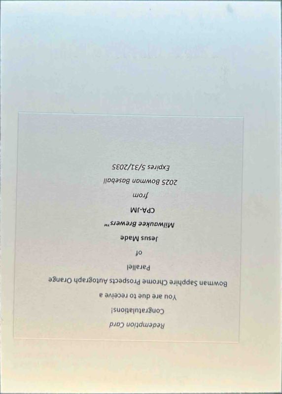 Jesus Made 2025 Bowman Sapphire Edition #CPS-JM Chrome Prospect Autographs - Orange Refractor /25 RAW Price Guide
