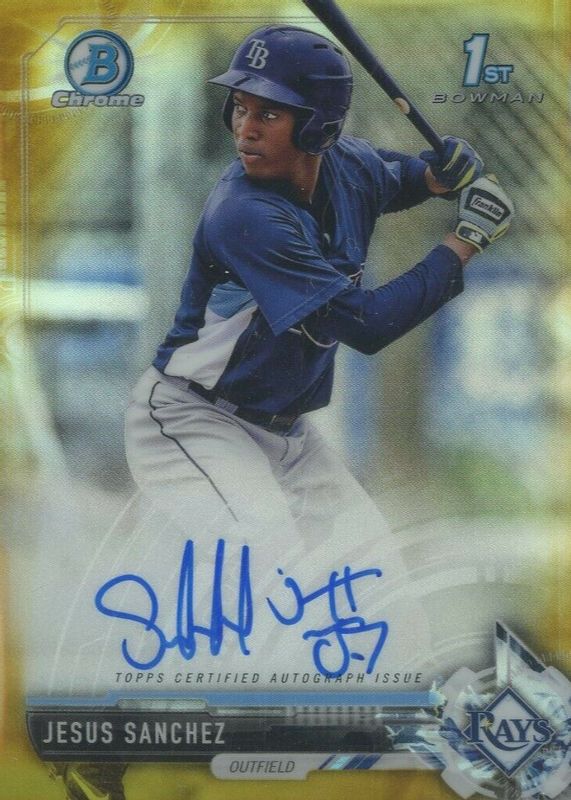 Best Prices Available For Sale of Jesus Sanchez 2017 Bowman Chrome #CPA-JS Prospect Auto - Gold Refractor /50 (1st)