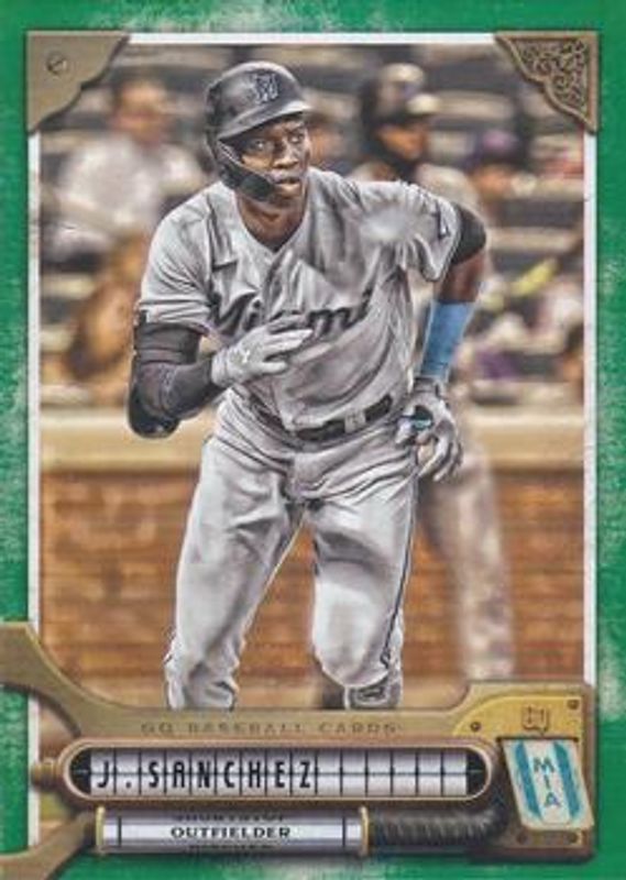 The Jesus Sanchez 2022 Topps Gypsy Queen #74 Green card is 1 of 24 Jesus Sanchez's card variations in the 2022 Topps Gypsy Queen set being tracked by Sports Card Investor, including #74 Base, #74b Base, #74 Missing Black Plate, #74 Missing Nameplate, and #74 Team Logo Swap.
