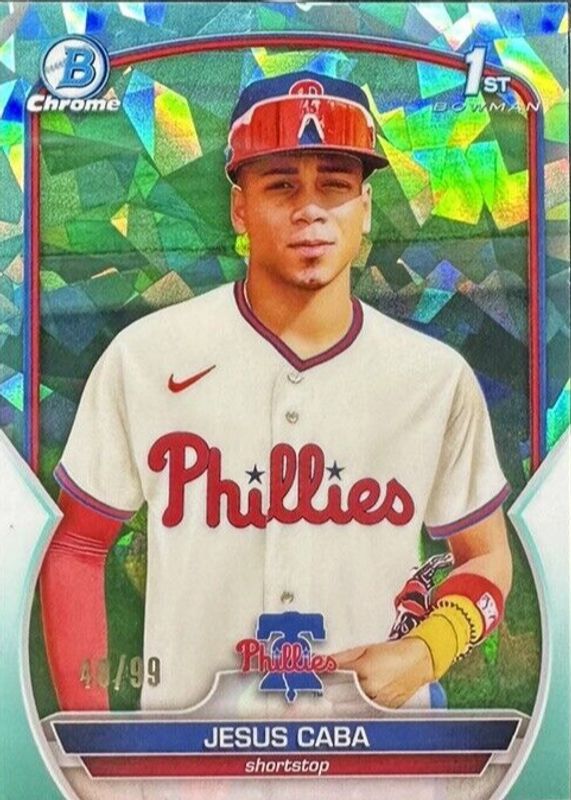 JESUS CABA 2023 BOWMAN CHROME 1ST SAPPHIRE AQUA PHILLIES /99 Q0566