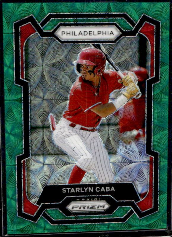 The Jesus Starlyn Caba 2024 Prizm #215 Green Scope /75 card is 1 of 30 Jesus Starlyn Caba's card variations in the 2024 Prizm set being tracked by Sports Card Investor, including Base, Blue Ice, Green, Green Ice, and Pink Ice.
