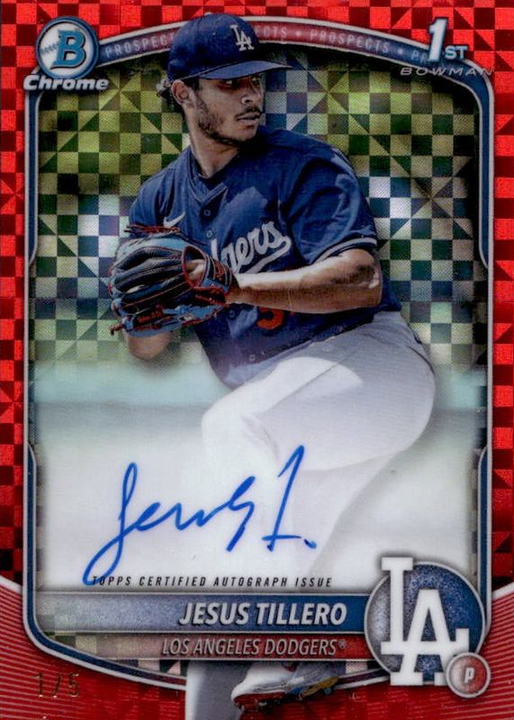 Best Prices Available For Sale of Jesus Tillero 2025 Bowman #CPA-JT Chrome Prospect Auto - Red X-Fractor /5 (1st)
