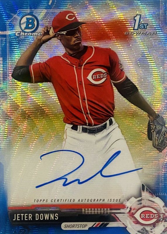 Best Prices Available For Sale of Jeter Downs 2017 Bowman Draft #CDA-JD Chrome DP Auto - Blue Wave Refractor /150 (1st)