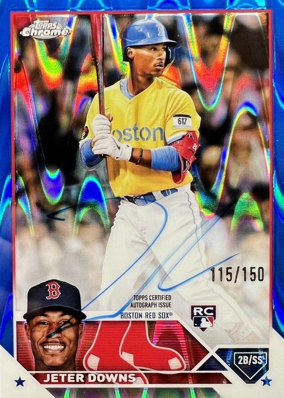 Jeter Downs 2023 Topps Chrome Rookie Blue RayWave Auto #/150 #RA-JDO Red Sox