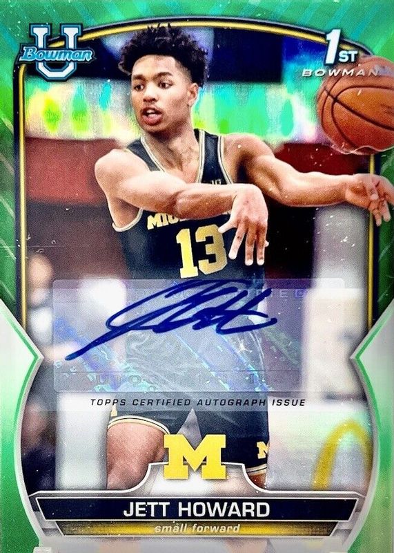 Best Prices Available For Sale of Jett Howard 2022 Bowman Chrome University #39 Prospect Autographs - Green Refractor /99 (1st)