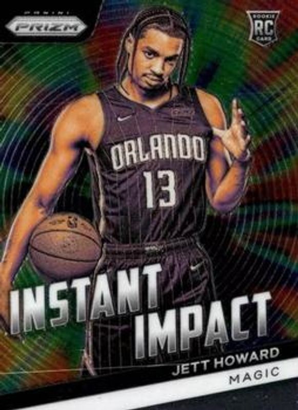 The Jett Howard 2023 Prizm #5 Instant Impact Rookie card is 1 of 82 Jett Howard's card variations in the 2023 Prizm set being tracked by Sports Card Investor, including #132 Base, #132b Base, #132 Blue Wave, #132 Choice Blue Yellow Green, and #132 Fast Break.