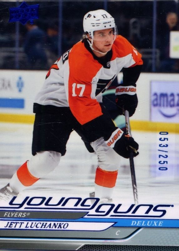 The Jett Luchanko 2024 Upper Deck #484 Young Guns - Deluxe /250 Rookie card in Raw condition has moved up $13.44 (+148%) in the last 30 days and was last sold for $22.50 .