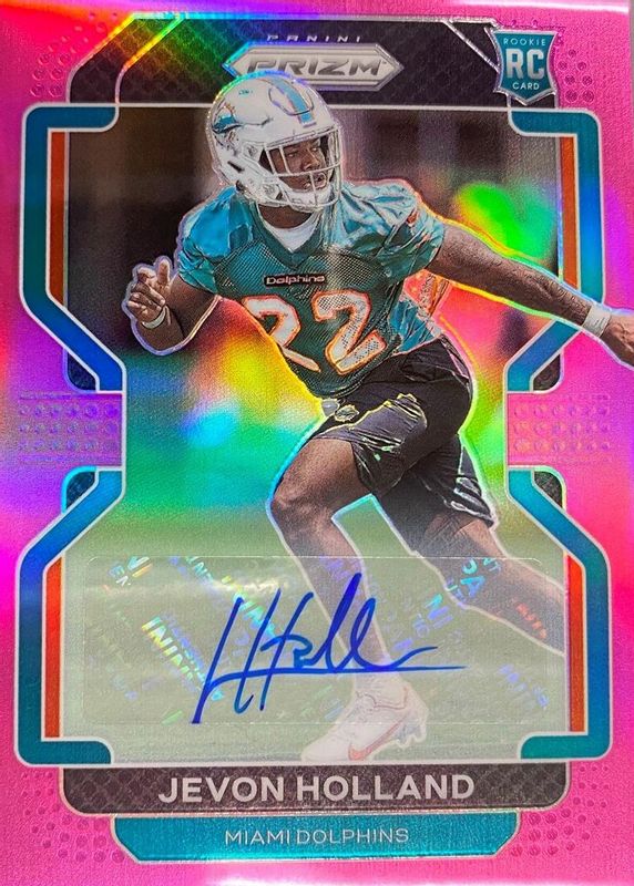 2021 PANINI PRIZM FOOTBALL JEVON HOLLAND RC AUTO PINK SP DOLPHINS #392