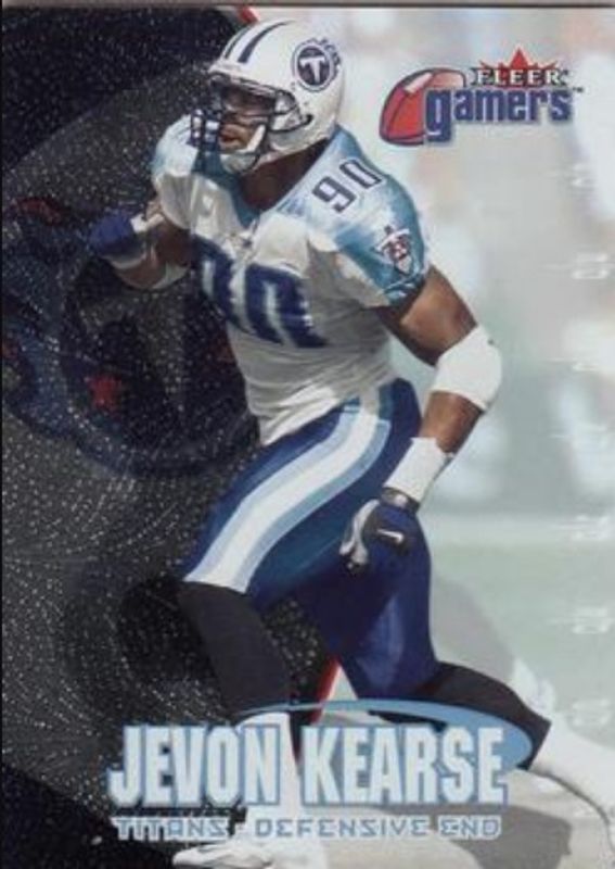The Jevon Kearse 2000 Fleer Gamers #9 Base card is 1 of 2 Jevon Kearse's card variations in the 2000 Fleer Gamers set being tracked by Sports Card Investor, including Extra.