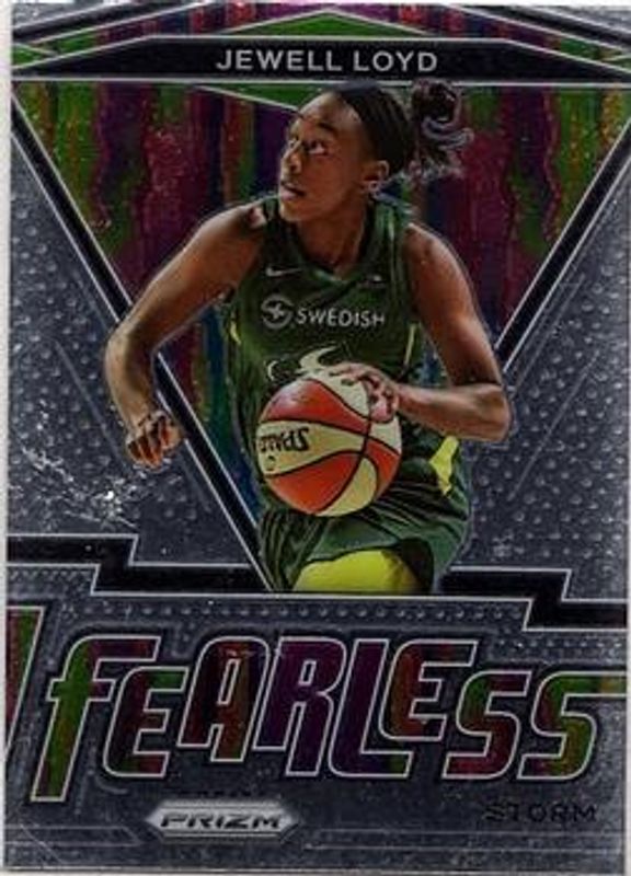 The Jewell Loyd 2021 Prizm WNBA #17 Fearless card is 1 of 54 Jewell Loyd's card variations in the 2021 Prizm WNBA set being tracked by Sports Card Investor, including Base, Green, Green Ice, Hyper, and Ice.