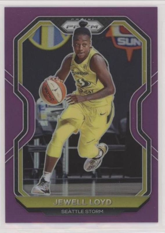 The Jewell Loyd 2021 Prizm WNBA #2 Purple /99 card is 1 of 54 Jewell Loyd's card variations in the 2021 Prizm WNBA set being tracked by Sports Card Investor, including Base, Green, Green Ice, Hyper, and Ice.