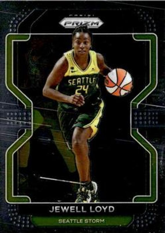 The Jewell Loyd 2022 Prizm WNBA #77 Base card is 1 of 49 Jewell Loyd's card variations in the 2022 Prizm WNBA set being tracked by Sports Card Investor, including Green, Green Ice, Hyper, Ice, and Ruby Wave.