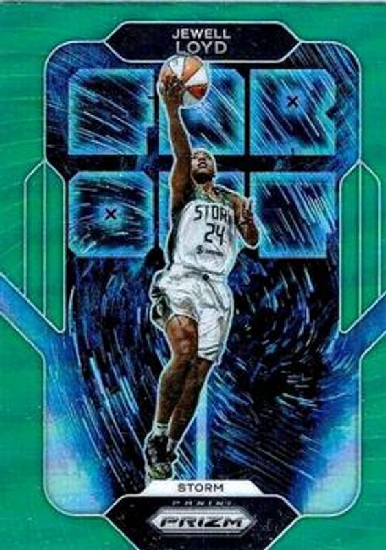 The Jewell Loyd 2022 Prizm WNBA #15 Far Out - Green card is 1 of 49 Jewell Loyd's card variations in the 2022 Prizm WNBA set being tracked by Sports Card Investor, including Base, Green, Green Ice, Hyper, and Ice.
