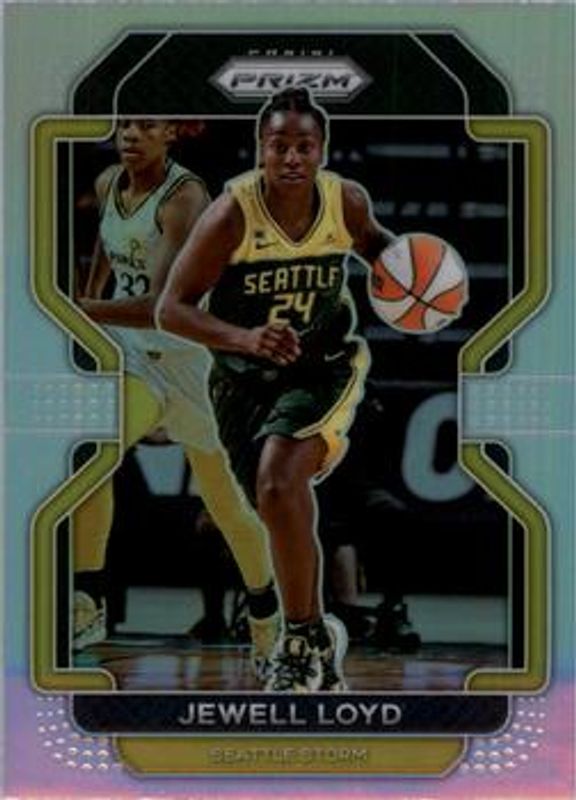 The Jewell Loyd 2022 Prizm WNBA #77 Silver card is 1 of 49 Jewell Loyd's card variations in the 2022 Prizm WNBA set being tracked by Sports Card Investor, including Base, Green, Green Ice, Hyper, and Ice.