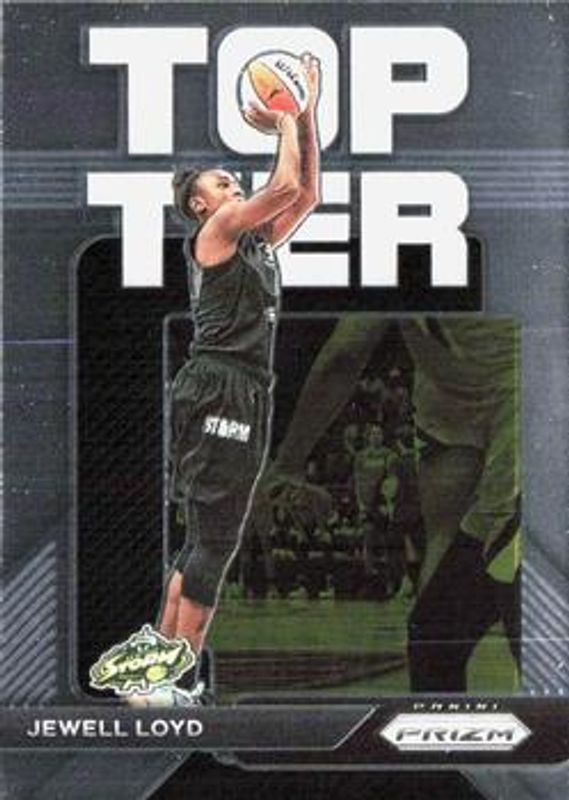 The Jewell Loyd 2023 Prizm WNBA #15 Top Tier card is 1 of 48 Jewell Loyd's card variations in the 2023 Prizm WNBA set being tracked by Sports Card Investor, including Base, Blue Wave, Green, Hyper, and Ice.