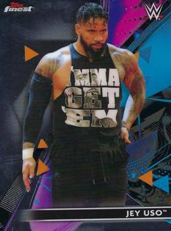 The Jey Uso 2021 Topps Finest WWE #55 Base card is 1 of 11 Jey Uso's card variations in the 2021 Topps Finest WWE set being tracked by Sports Card Investor, including Refractor, X Fractors, Blue Refractor /150, Green Refractor /99, and Rose Gold Refractor /75.
