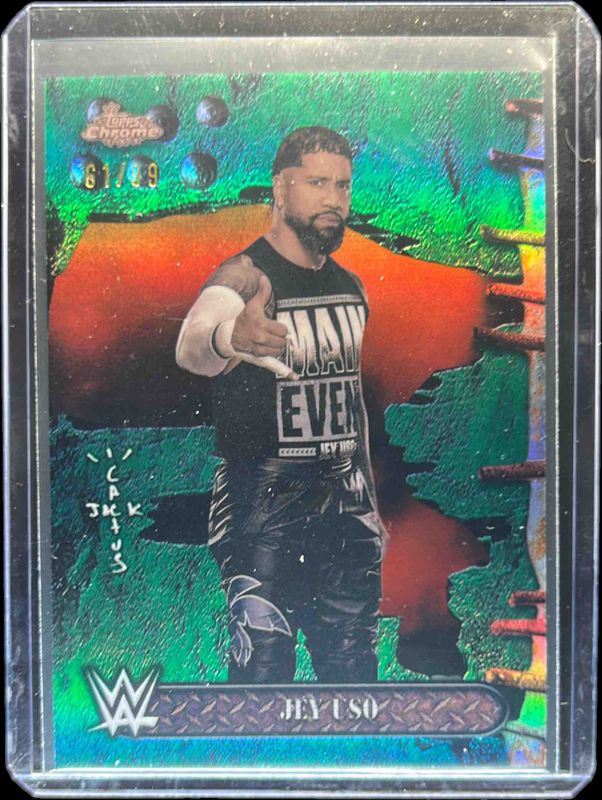 Jey Uso 2025 Topps Chrome WWE x Cactus Jack #3 Green Refractor /99 RAW Price Guide