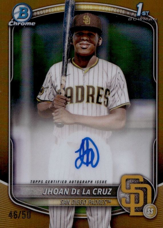 JHOAN DE LA CRUZ 2025 BOWMAN CHROME PROSPECT AUTO GOLD REF/50 #CPA-JDL PADRES