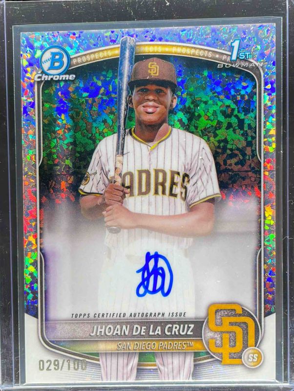 2025 Bowman Chrome Jhoan De La Cruz 1st Mini Diamonds Auto /100 Padres #CPA-JDL