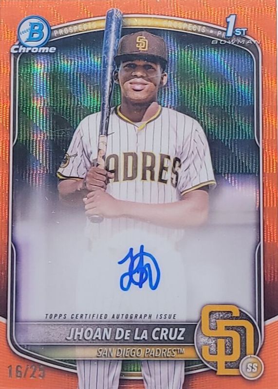 Jhoan De La Cruz 2025 Bowman Chrome #CPA-JDL Prospect Auto - Orange Wave Refractor /25 (1st) RAW Price Guide