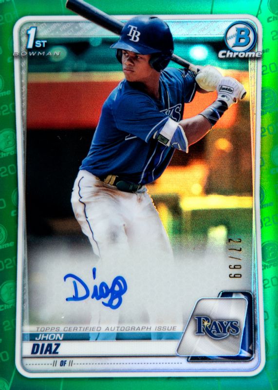 Best Prices Available For Sale of Jhon Diaz 2020 Bowman #CPA-JDI Chrome Prospect Auto - Green Refractor /99 (1st)