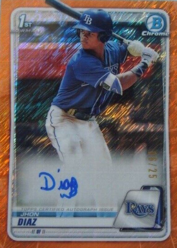 Jhon Diaz 2020 Bowman #CPA-JDI Chrome Prospect Auto - Orange Shimmer Refractor /25 (1st) RAW Price Guide