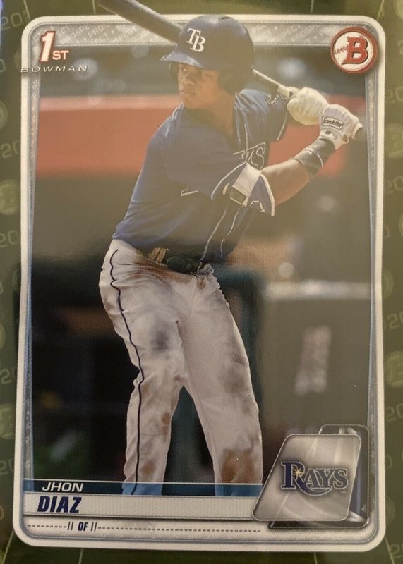 This card is 1 of 22 Jhon Diaz's card variations in the 2020 Bowman set being tracked by Sports Card Investor, including Paper Prospects (1st), Paper Prospects - Sky Blue /499 (1st), Chrome Prospects (1st), Chrome Prospects - Atomic Refractor (1st), and Chrome Prospects - Refractor /499 (1st).