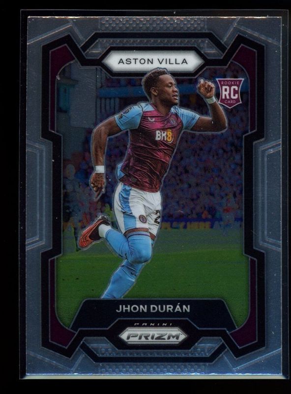 The Jhon Duran 2023 Prizm Premier League #109 Base Rookie card is 1 of 70 Jhon Duran's card variations in the 2023 Prizm Premier League set being tracked by Sports Card Investor, including Blue Mosaic, Breakaway, Breakaway Orange, Choice, and Choice Red White Blue.