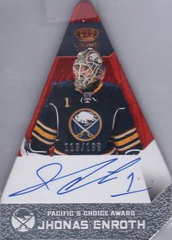 Jhonas Enroth 2013 Crown Royale #PC-JEN Pacific's Choice Autographs Ruby /99 RAW Price Guide