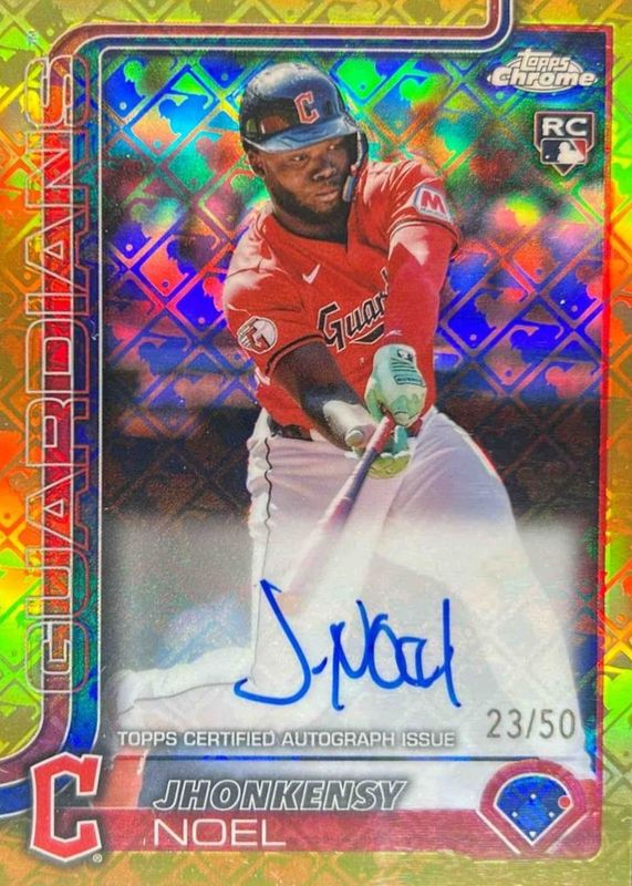 Auctions Ending Soon for Jhonkensy Noel 2025 Topps Chrome Logofractor Edition #RA-JN Rookie Autographs - Gold Refractor /50 RAW