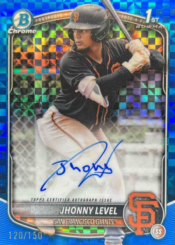 2025 Bowman Jhonny Level Chrome Auto Blue X-Fractor 1st #120/150 Giants