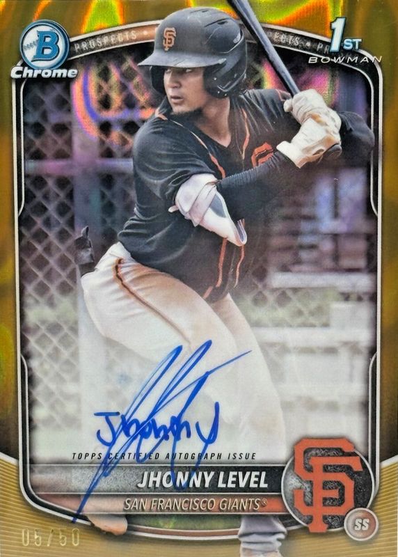 2025 Bowman Chrome Jhonny Level Gold Lava Refractor 1st Auto /50 Giants