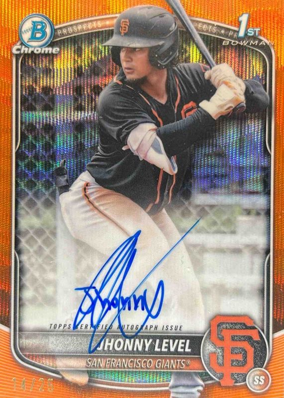 2025 Bowman Chrome 1st Prospect Autograph Jhonny Level Orange Wave /25 GIANTS SP