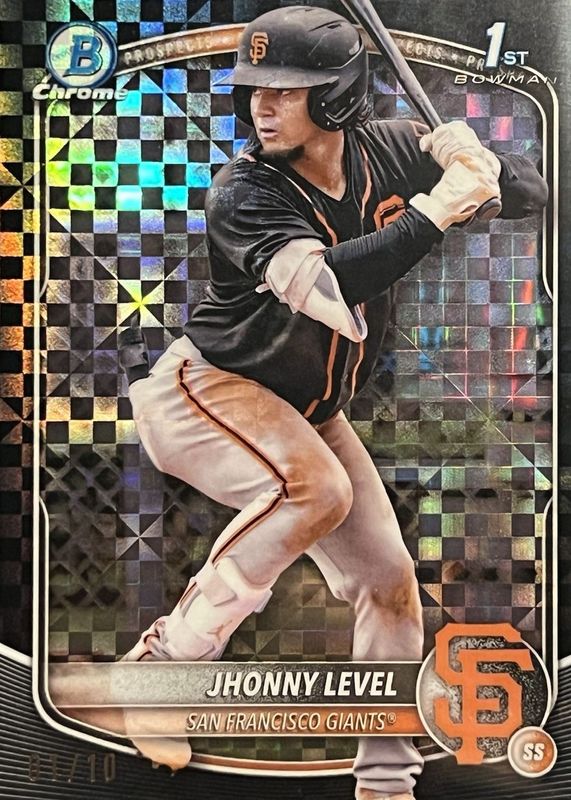 The Jhonny Level 2025 Bowman #BCP-147 Chrome Prospects - Black X-Fractor /10 (1st) card in Raw condition has not changed in price in the last 30 days and was last sold for $105.00 .