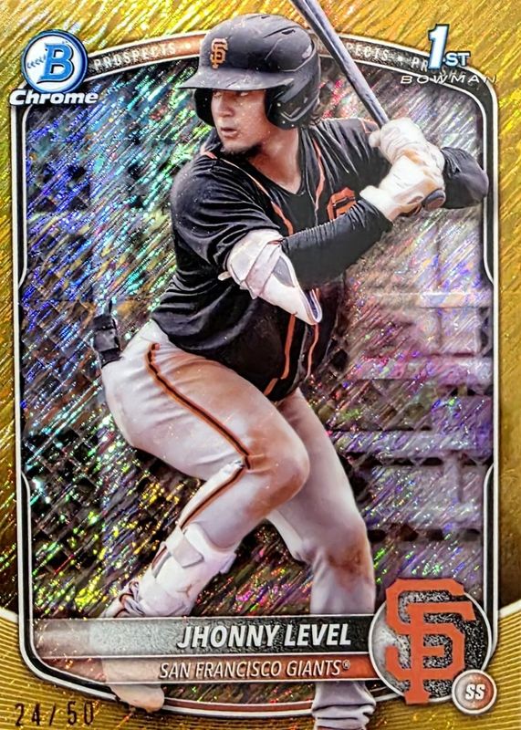 Best Prices Available For Sale of Jhonny Level 2025 Bowman #BCP-147 Chrome Prospects - Gold Shimmer Refractor /50 (1st)