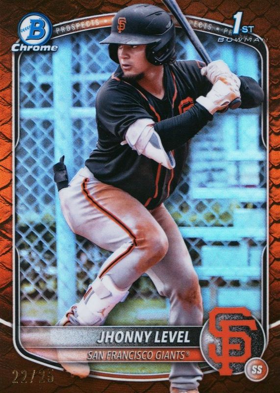 2025 Bowman Chrome Jhonny Level 1st Bowman Orange Reptilian Refractor /25