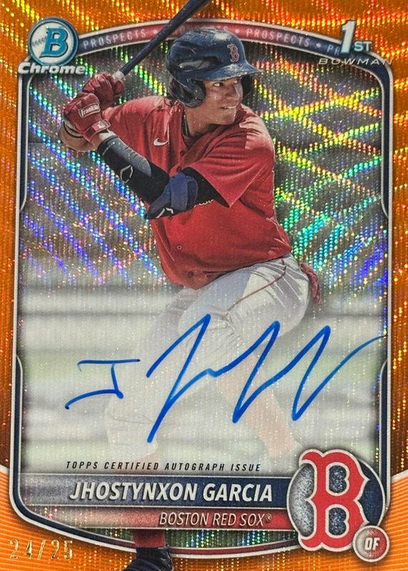 2025 Bowman Chrome Orange Wave Auto #CPA-JGA Jhostynxon Garcia Red Sox #3/25