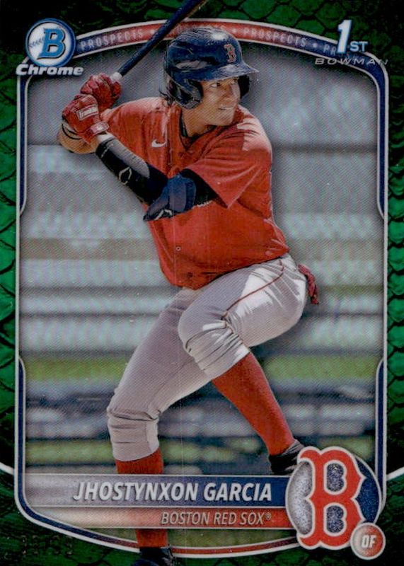 Jhostynxon Garcia 2025 Bowman #BCP-43 Chrome Prospects - Reptilian Green Refractor /99 (1st) RAW Price Guide