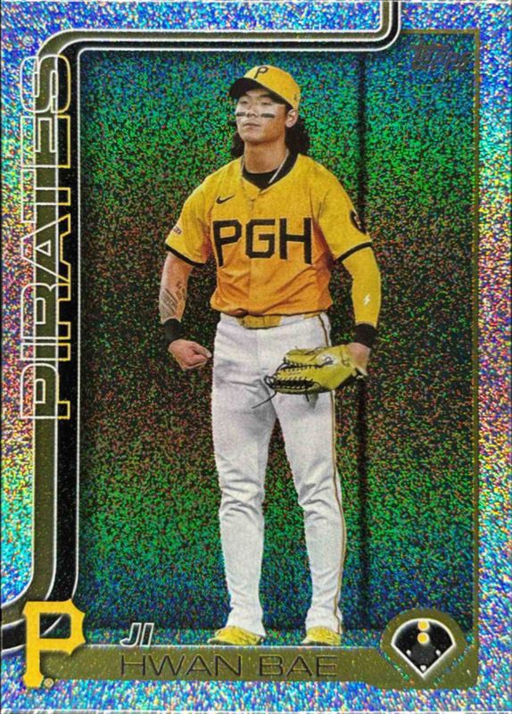 The Ji Hwan Bae 2025 Topps Update #US64 Sandglitter card is 1 of 52 Ji Hwan Bae's card variations in the 2025 Topps Update set being tracked by Sports Card Investor, including Base, Aqua Holo Foil, Aqua Rainbow Foil, Diamante Foil, and Holiday.