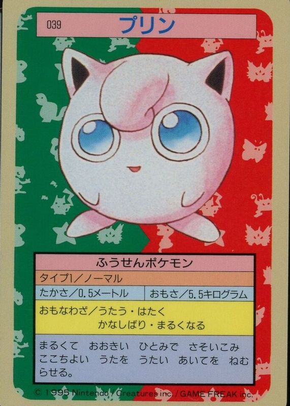 Jigglypuff 1997 Japanese Topsun #039 Blue Back (1st Edition) RAW TCG (LIGHTLY PLAYED) Price Guide