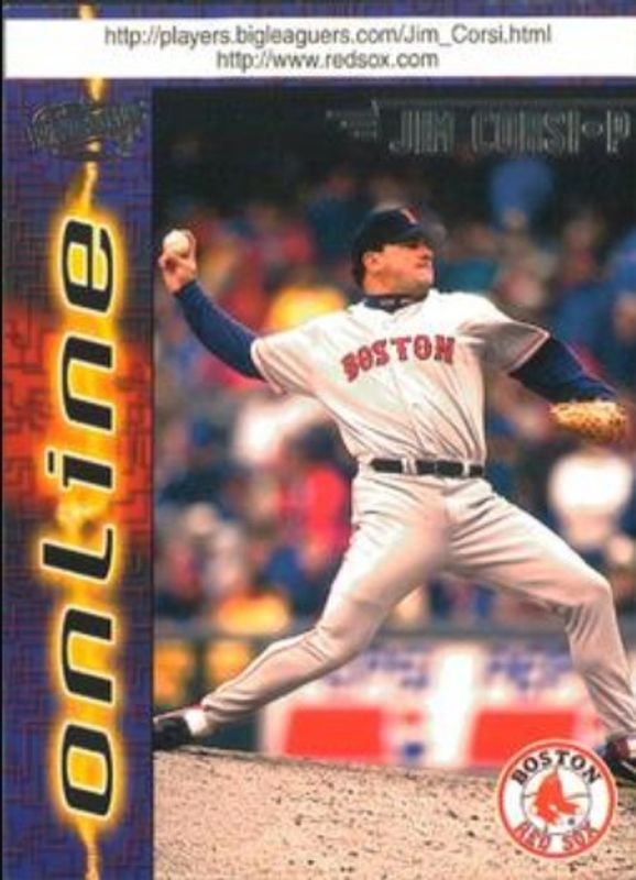 The Jim Corsi 1998 Pacific Online #110 Base card is 1 of 4 Jim Corsi's card variations in the 1998 Pacific Online set being tracked by Sports Card Investor, including Base Winners, Red, and Web Cards.