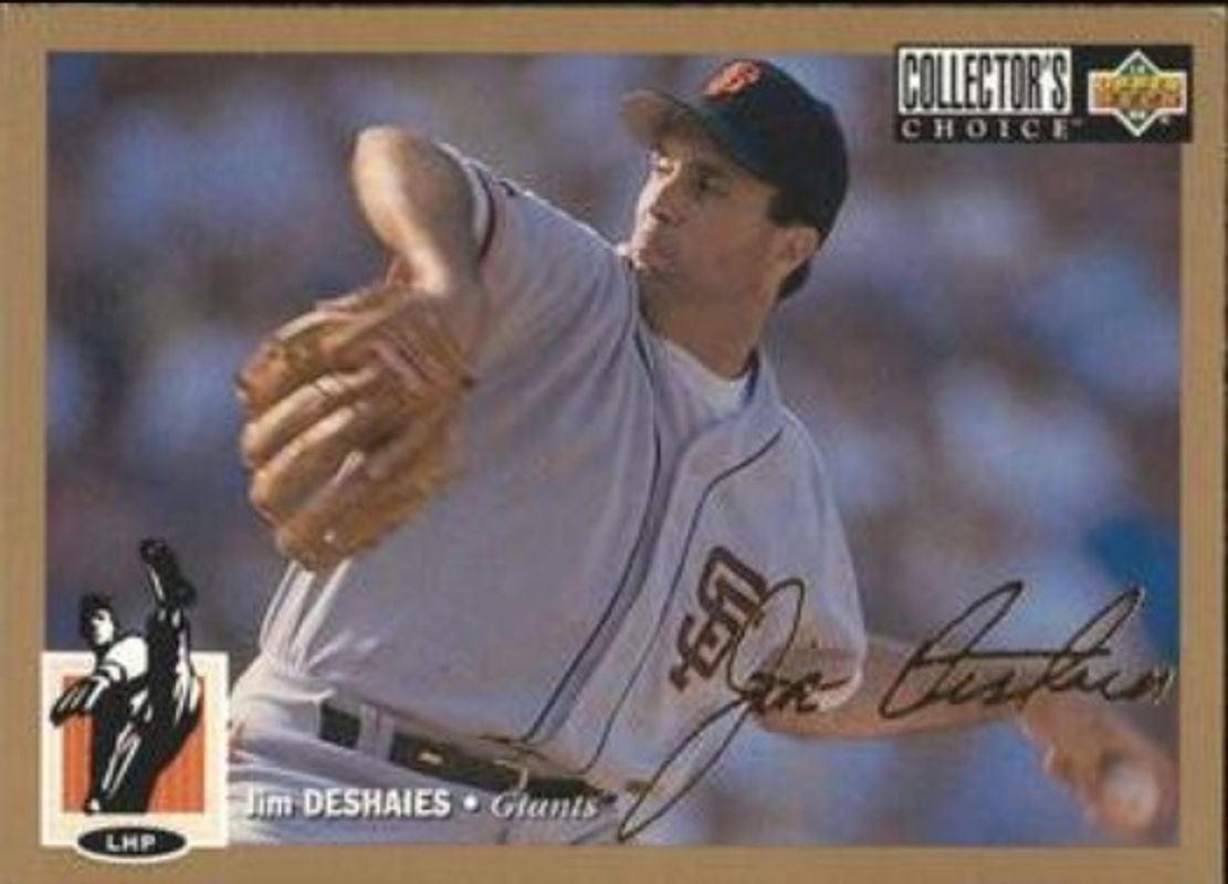 The Jim Deshaies 1994 Upper Deck Collector's Choice #91 Gold Signatures card is 1 of 6 Jim Deshaies' card variations in the 1994 Upper Deck Collector's Choice set being tracked by Sports Card Investor, including #437 Base, #91 Base, #437 Gold Signatures, #437 Silver Signatures, and #91 Silver Signatures.