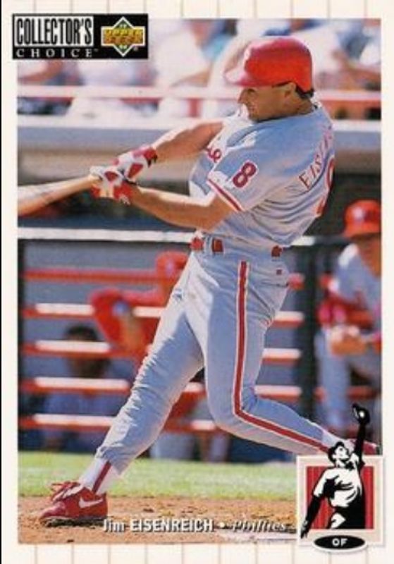 The Jim Eisenreich 1994 Upper Deck Collector's Choice #388 Base card is 1 of 3 Jim Eisenreich's card variations in the 1994 Upper Deck Collector's Choice set being tracked by Sports Card Investor, including Gold Signatures, and Silver Signatures.