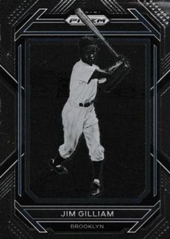The Jim Gilliam 2023 Prizm #184 Base card is 1 of 26 Jim Gilliam's card variations in the 2023 Prizm set being tracked by Sports Card Investor, including Blue Ice, Giraffe, Green Ice, Hyper, and Ice.