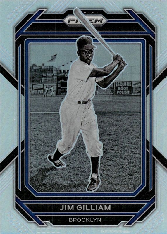The Jim Gilliam 2023 Prizm #184 Silver card is 1 of 26 Jim Gilliam's card variations in the 2023 Prizm set being tracked by Sports Card Investor, including Base, Blue Ice, Giraffe, Green Ice, and Hyper.
