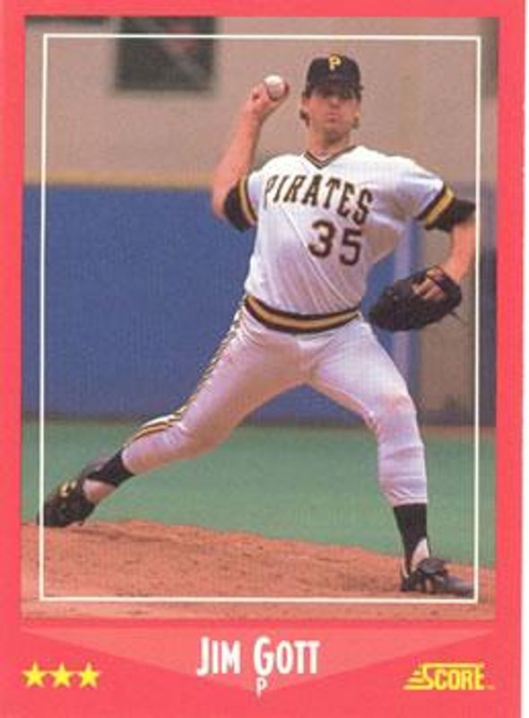 The Jim Gott 1988 Score #320 Glossy card is 1 of 2 Jim Gott's card variations in the 1988 Score set being tracked by Sports Card Investor, including Base.