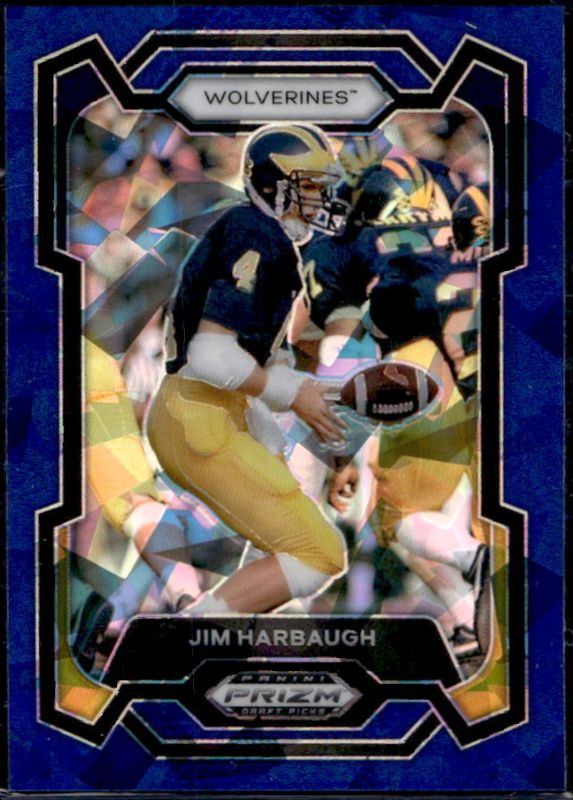 The Jim Harbaugh 2024 Prizm Draft Picks #50 Blue Ice /99 card is 1 of 68 Jim Harbaugh's card variations in the 2024 Prizm Draft Picks set being tracked by Sports Card Investor, including Base, Green, Purple Wave, Red Ice, and Ruby Wave.