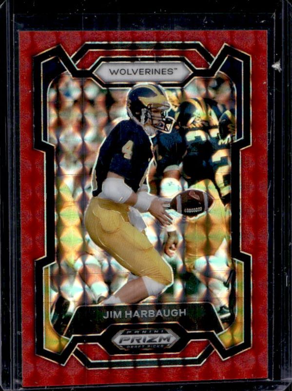 The Jim Harbaugh 2024 Prizm Draft Picks #50 Red Finite /125 card is 1 of 68 Jim Harbaugh's card variations in the 2024 Prizm Draft Picks set being tracked by Sports Card Investor, including Base, Green, Purple Wave, Red Ice, and Ruby Wave.